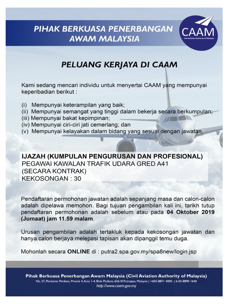 Peluang Kerjaya Di Pihak Berkuasa Penerbangan Awam Malaysia Caam Kelayakan Pmr Spm Diploma Ijazah Ejawatankini Com
